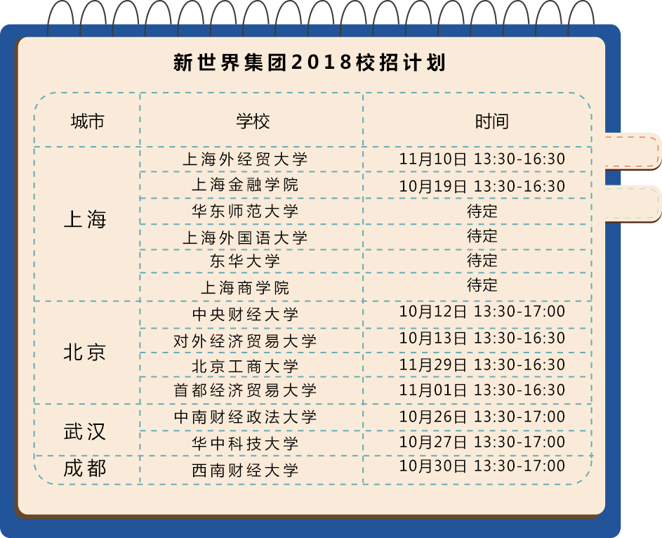 新鵬”計劃是新世界百貨集團為滿足不斷迅速發(fā)展的各項業(yè)務(wù)領(lǐng)域需求,而為應(yīng)屆大學(xué)生們量身定制的職業(yè)化成長路徑,目的是通過全面零售百貨專業(yè)領(lǐng)域的輪崗、專業(yè)帶教團隊和系統(tǒng)的內(nèi)外訓(xùn)課程等一系列培育方式,打造一支新世界百貨集團未來具備綜合性能力的儲備軍團。