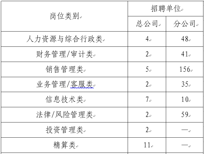 2018年度校園招聘由中國人保壽險總公司聯(lián)合37家分公司及其下屬機構(gòu)統(tǒng)一招聘勞動合同制內(nèi)勤員工,招聘崗位涵蓋人力資源與綜合行政、財務管理/審計、精算、投資管理、銷售管理、業(yè)務管理/客戶服務、市場管理、戰(zhàn)略研究、信息技術(shù)、法律/風險管理、醫(yī)學類(核保、核賠和健康險類)等在內(nèi)的12大類崗位,工作地點遍布全國總分機構(gòu),計劃招聘應屆畢業(yè)生465人,崗位詳情請登陸本公司招聘系統(tǒng)查看。