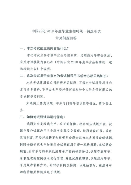 中國石化2018年度畢業(yè)生招聘統(tǒng)一初選考試常見問題回答
