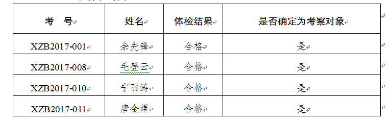 2017年公開遴選公務(wù)員體檢結(jié)果及人選考察事項公告