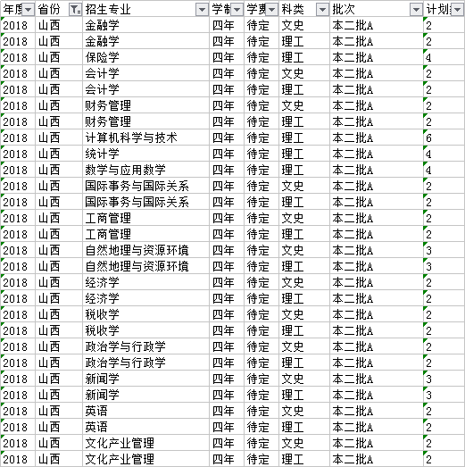 云南財(cái)經(jīng)大學(xué)2018年本科分省招生計(jì)劃表(山西?。?/h1>