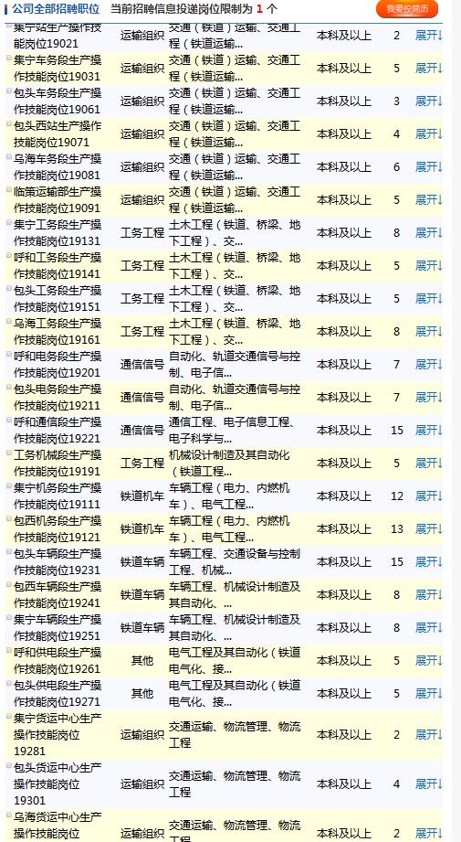 崗位表及職位申請網(wǎng)址:http://rczp.china-railway.com.cn/huhetieluju/hhzpxx/public.jsp?jmetazpxxid=NDY3OA==