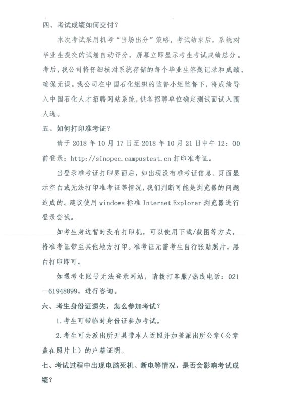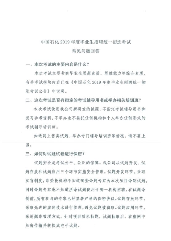 中國(guó)石化2019年度畢業(yè)生招聘統(tǒng)一初選考試常見問題回答