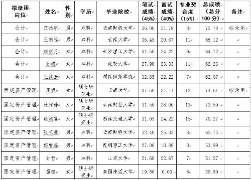 根據(jù)工作需要,綜合筆面試成績(jī)及排名,現(xiàn)對(duì)擬錄用人員進(jìn)行公示。如對(duì)擬錄用人員有異議,請(qǐng)及時(shí)向昆明軌道交通集團(tuán)有限公司紀(jì)檢監(jiān)察室反映。