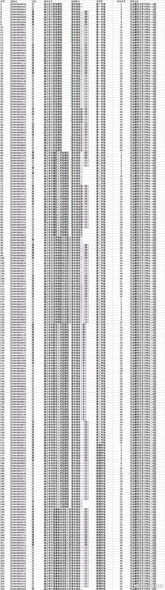 4.考場及座位詳見下表。
