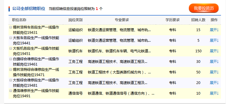本次招聘崗位為內(nèi)蒙古集通鐵路(集團(tuán))有限責(zé)任公司生產(chǎn)一線操作技能崗位,具體招聘崗位信息見附表。