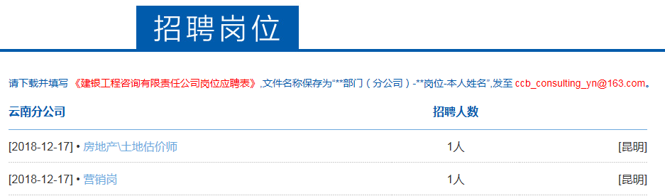 (二)報(bào)名方式:本次招聘僅接受網(wǎng)上報(bào)名。應(yīng)聘者填寫 《建銀工程咨詢有限責(zé)任公司崗位應(yīng)聘表》,填寫后發(fā)送到各機(jī)構(gòu)指定報(bào)名電子郵箱(文件名稱保存為“**部門(分公司)-**崗位-本人姓名”)。