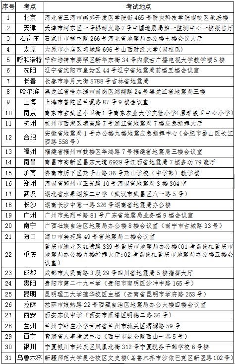 二、考試地點(diǎn)