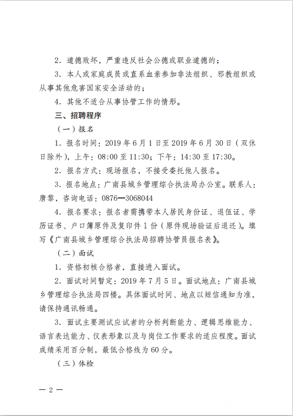 文山州廣南縣城鄉(xiāng)管理綜合執(zhí)法局2019年招聘協(xié)管員公告