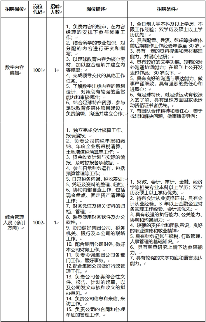具體崗位及條件如下: