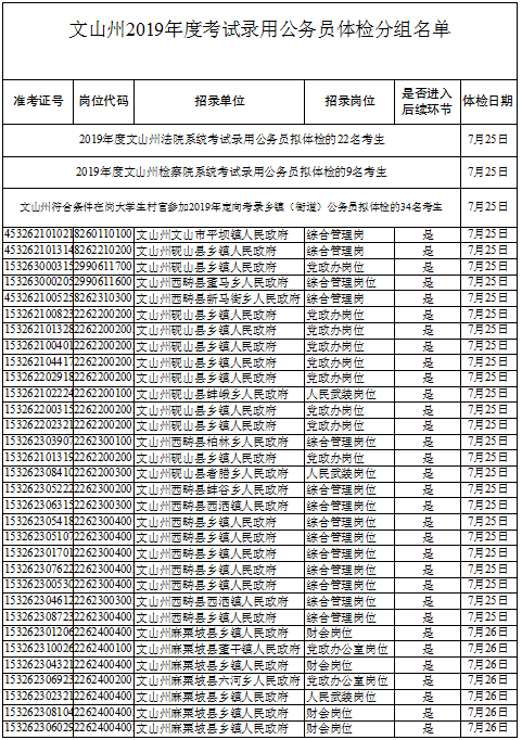文山州2019年度考試錄用公務(wù)員體檢分組名單