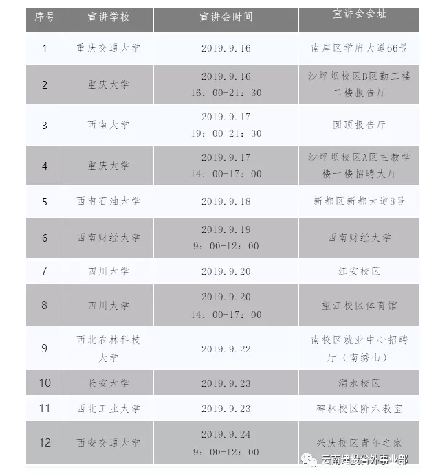 9月校園招聘行程