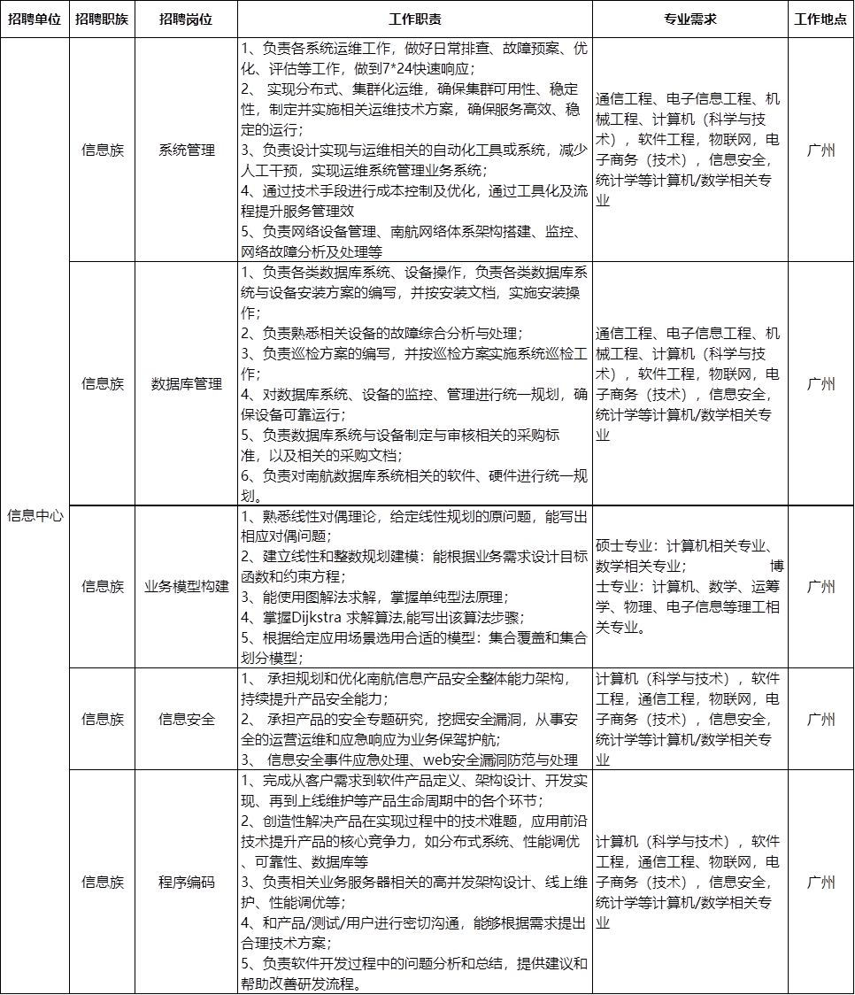 南方航空2020屆信息崗位秋季校園招聘
