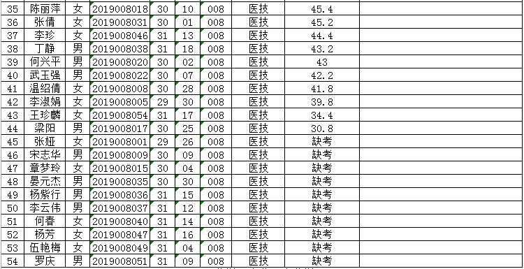 曲靖市富源縣中醫(yī)醫(yī)院2019年招聘編外人員筆試成績排名公示