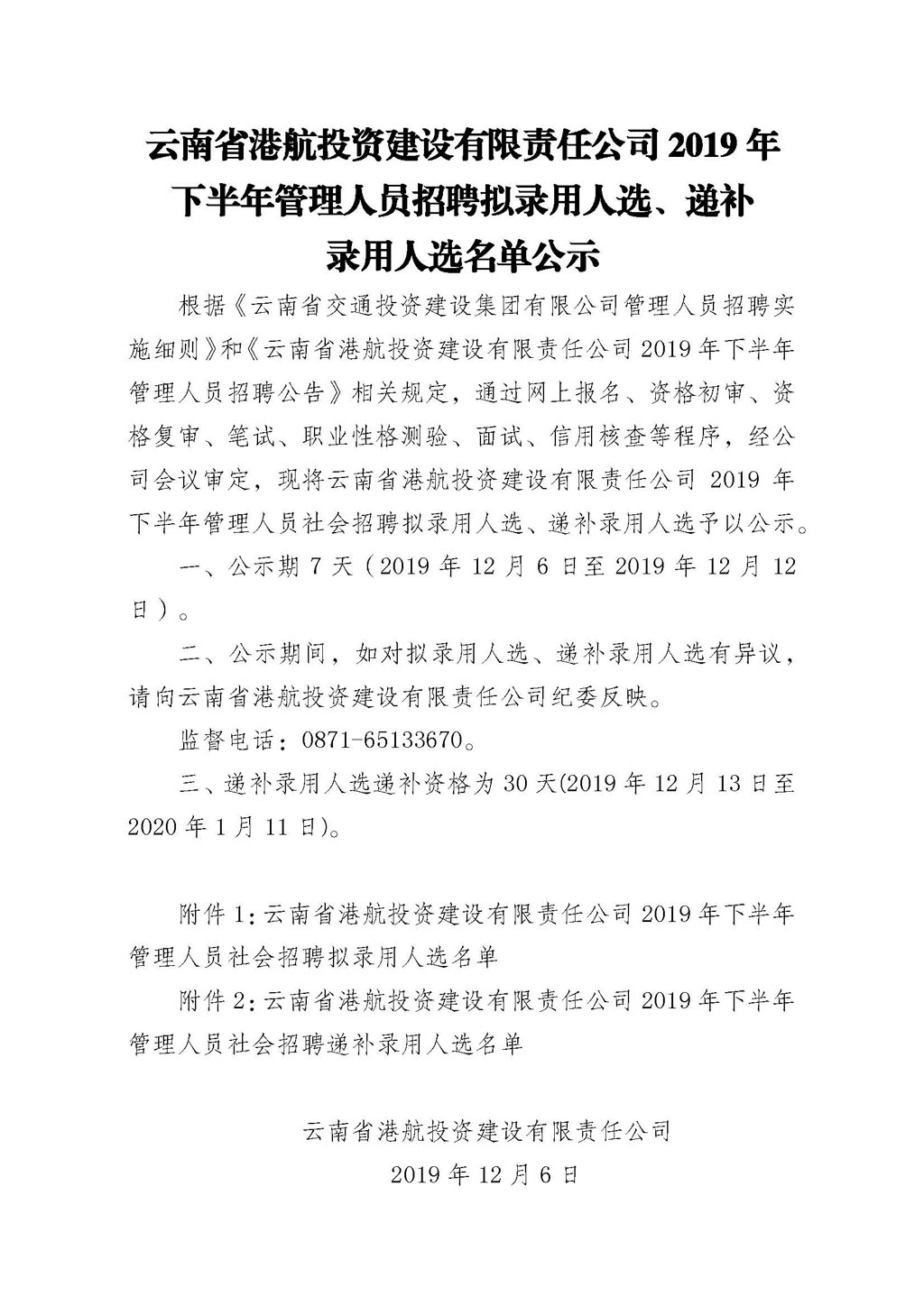 附件2:云南省港航投資建設有限責任公司2019年下半年管理人員社會招聘遞補錄用人選名單.pdf