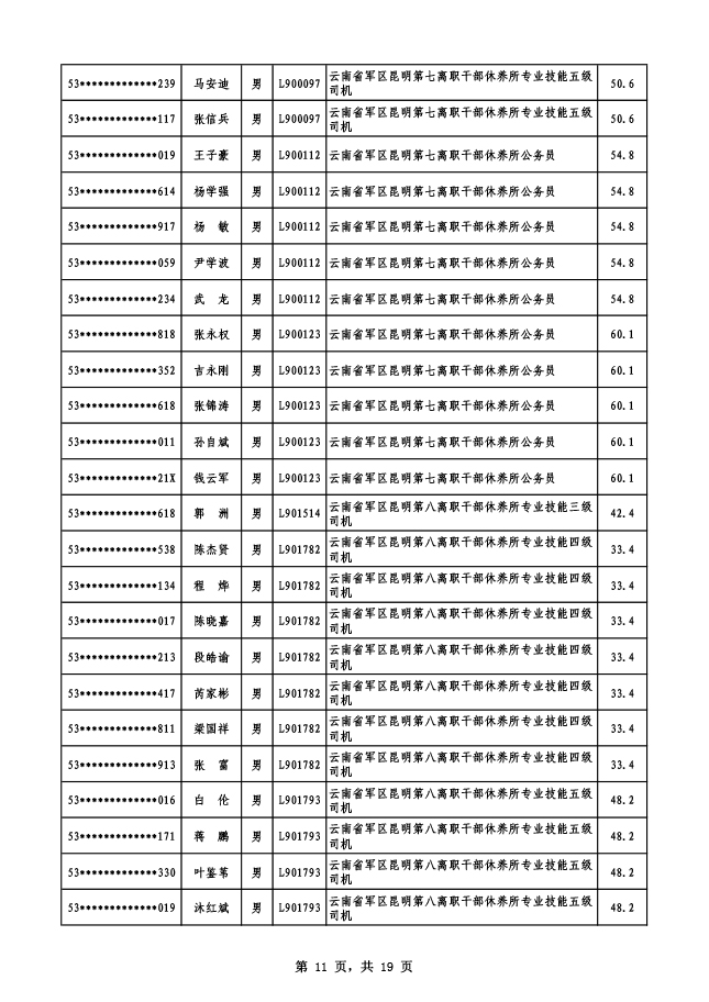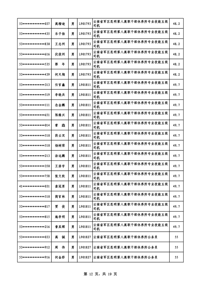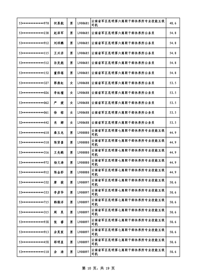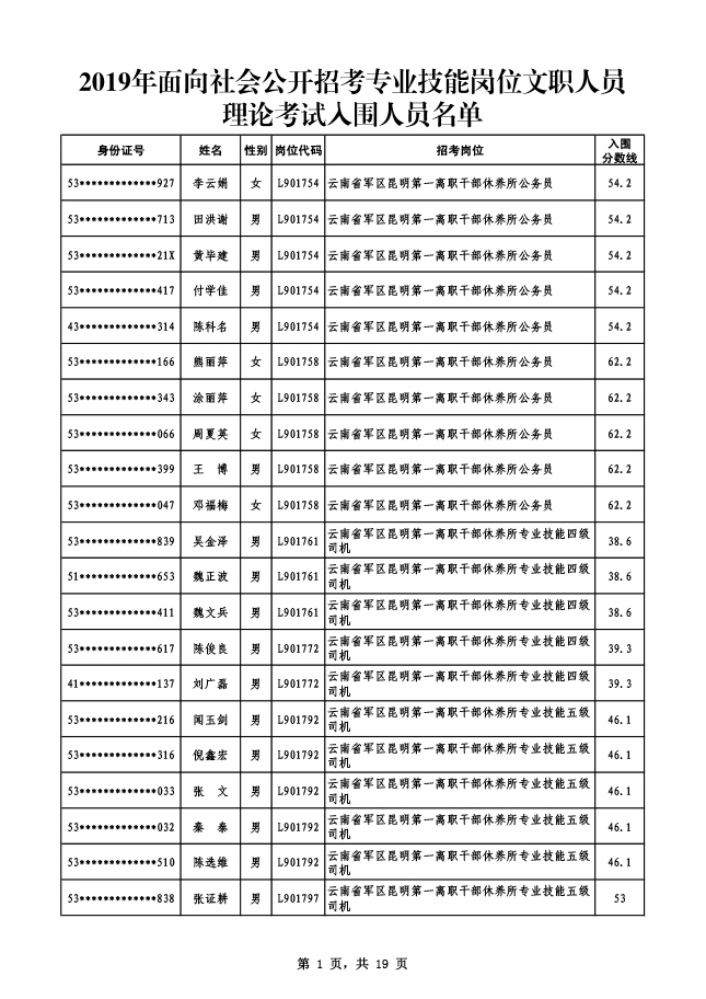 2019年云南省軍區(qū)面向社會公開招考專業(yè)技能崗位文職人員