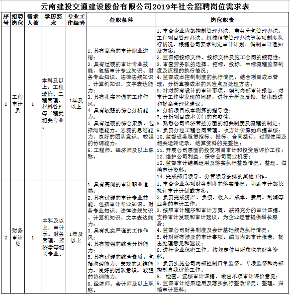 云南建投交通建設(shè)股份有限公司2019年社會招聘啟事