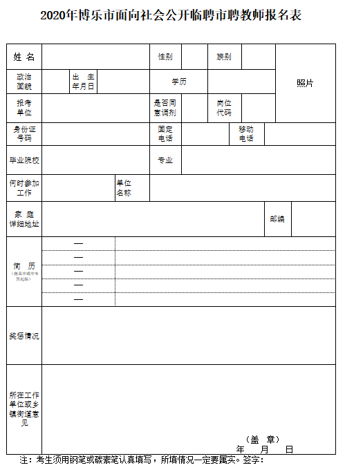 附件2:2020年博樂(lè)市面向社會(huì)公開(kāi)臨聘市聘教師報(bào)名表