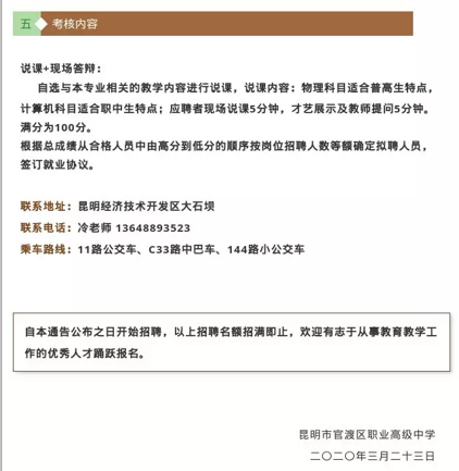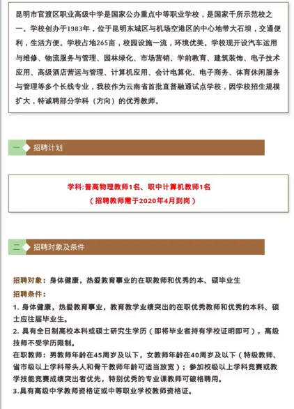 官渡區(qū)職業(yè)高級(jí)中學(xué)2020年教師招聘公告