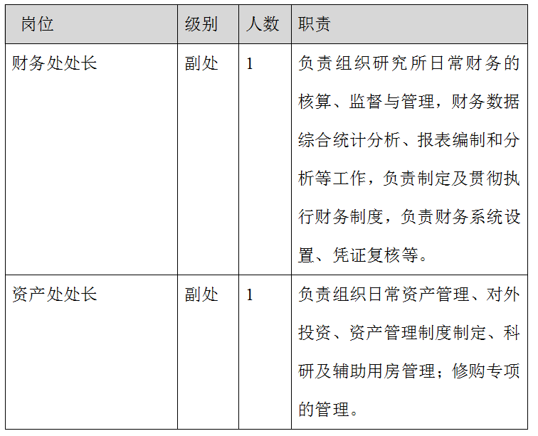 部門(mén)職責(zé):負(fù)責(zé)研究所資金的管理、監(jiān)督與控制;財(cái)務(wù)預(yù)算和決算,日常會(huì)計(jì)核算及財(cái)務(wù)管理;工資薪金發(fā)放及成本分?jǐn)?;稅?wù)工作;接受財(cái)務(wù)審計(jì)和監(jiān)察;基本建設(shè)財(cái)務(wù)管理;工會(huì)財(cái)務(wù)工作。負(fù)責(zé)固定資產(chǎn)配置、采購(gòu)、處置、產(chǎn)權(quán)登記、清查、信息及檔案管理;對(duì)外投資管理;科研及輔助用房管理;參與科研設(shè)備購(gòu)置(修購(gòu)專項(xiàng))的規(guī)劃。完成領(lǐng)導(dǎo)交辦的其他工作。