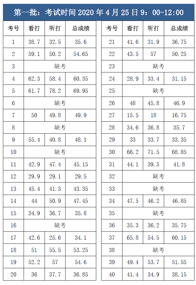 附件:昆明市呈貢區(qū)人民法院2020年公開招聘合同制書記員技能測試成績
