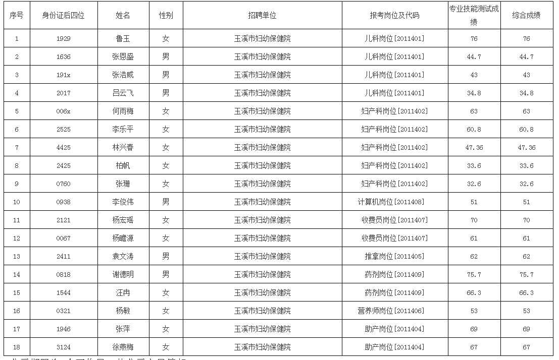 玉溪市婦幼保健院2020年公開(kāi)招聘編外人員擬聘用人員公示