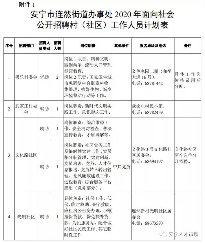1. 安寧市連然街道辦事處 2020 年面向社會公開招聘村(社區(qū))工作人員計劃表