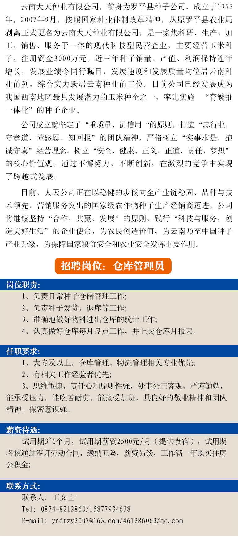 云南大天種業(yè)有限公司招聘簡(jiǎn)章