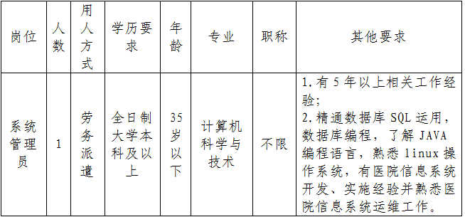 一、因單位業(yè)務(wù)發(fā)展需要,現(xiàn)面向社會(huì)公開招聘編制外系統(tǒng)管理員(勞務(wù)派遣方式)。
