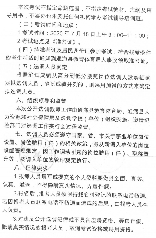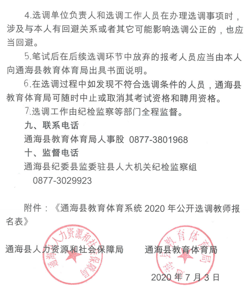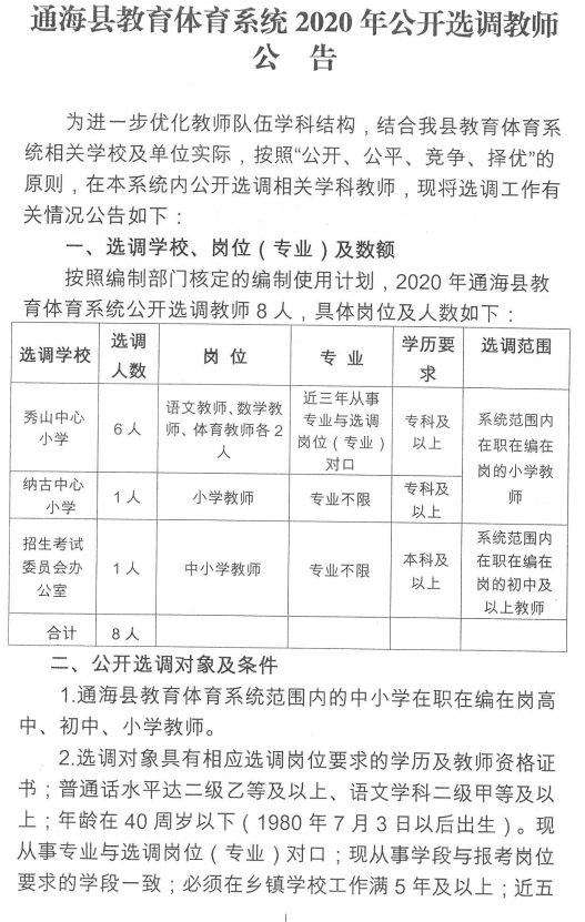 玉溪市通??h教育體育系統(tǒng)2020年選調(diào)教師公告