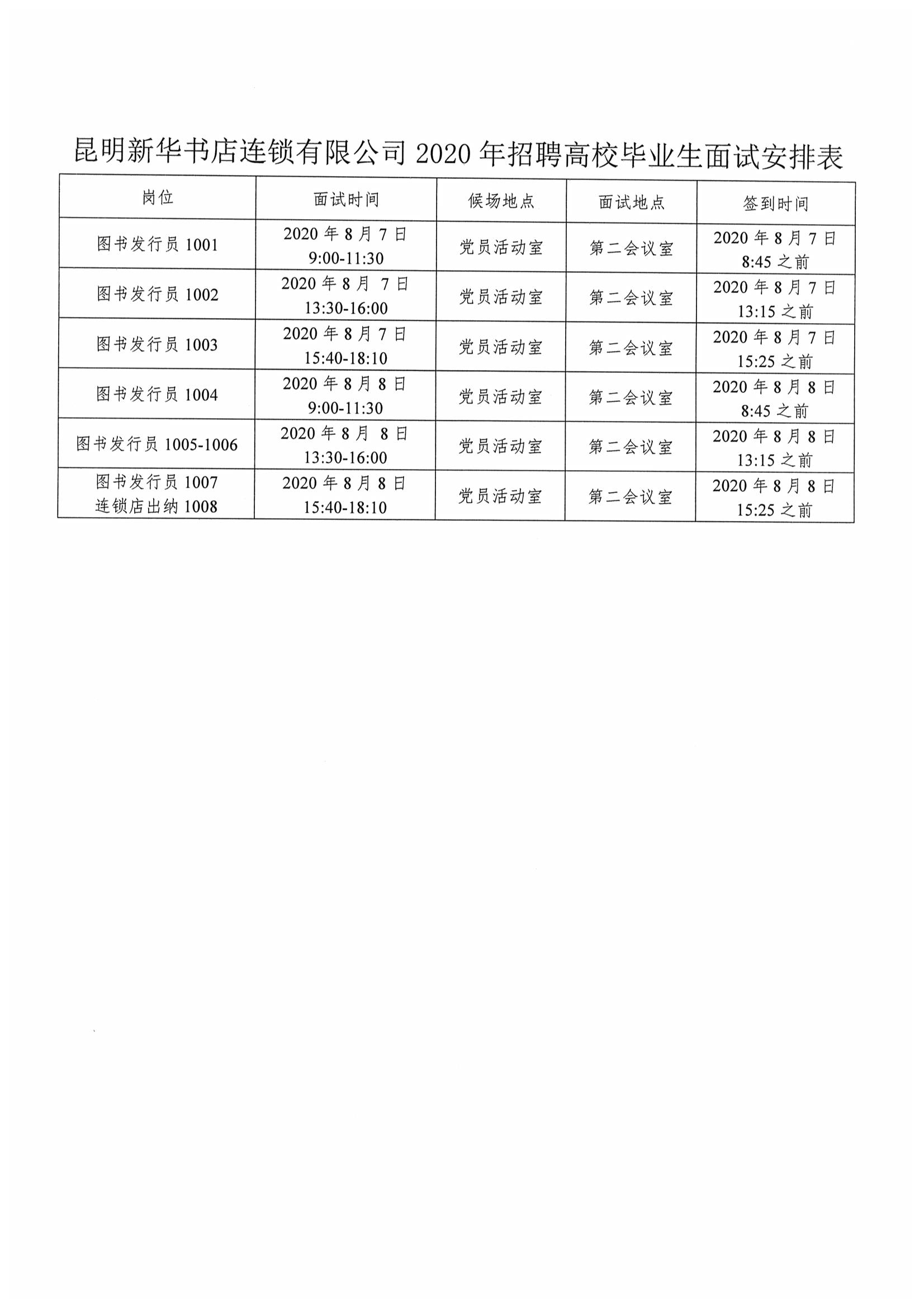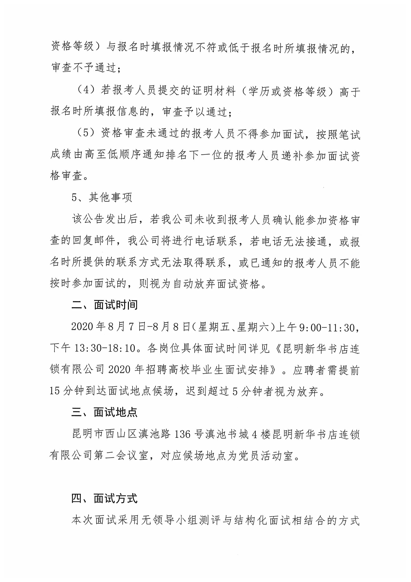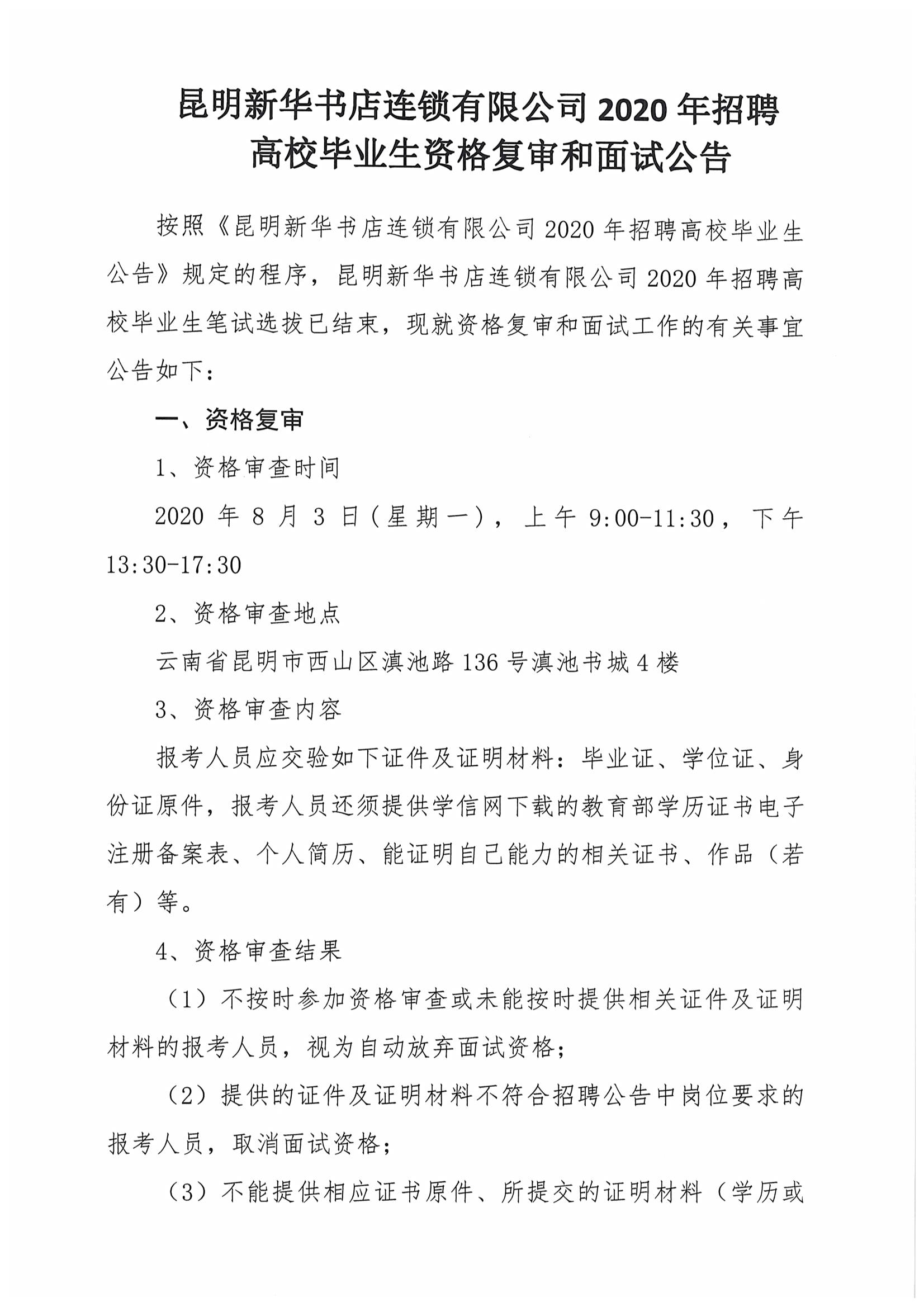昆明新華書店連鎖有限公司2020年招聘高校畢業(yè)生資格復(fù)審和面試公告