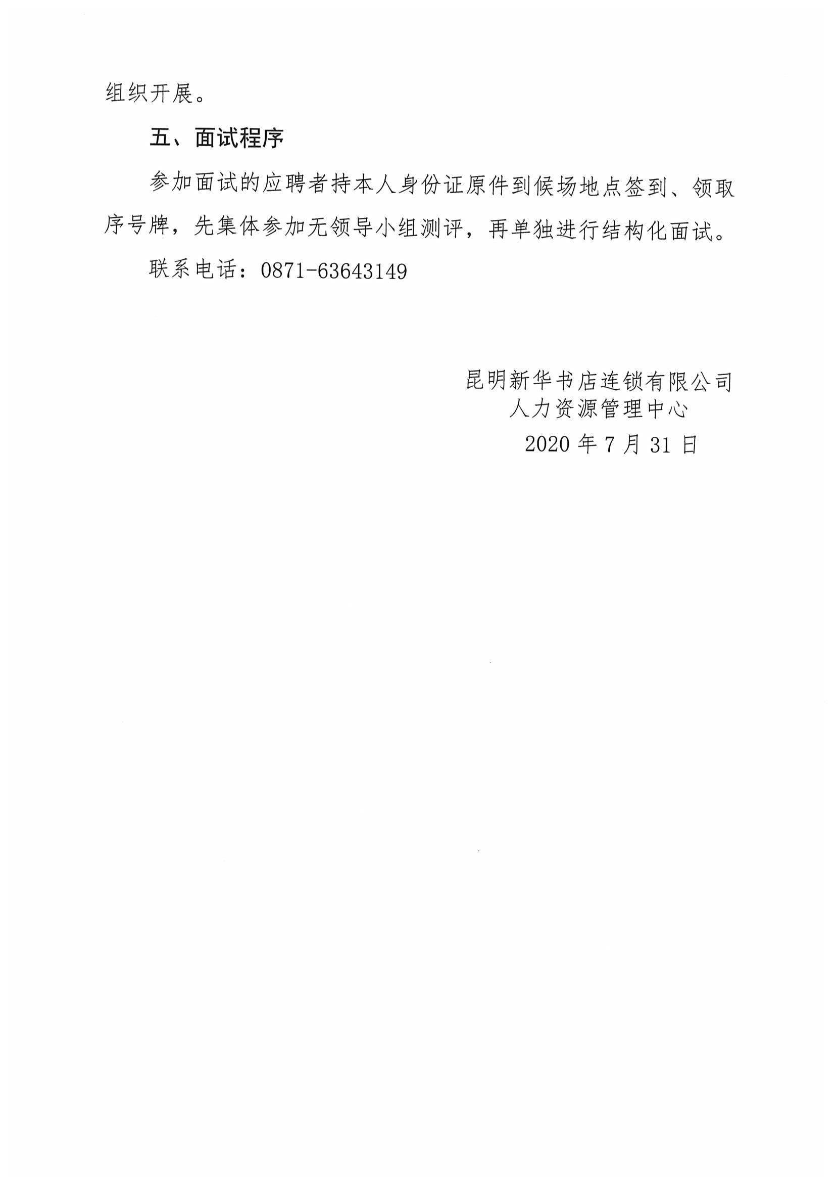 昆明新華書店連鎖有限公司2020年招聘資格復(fù)審和面試公告
