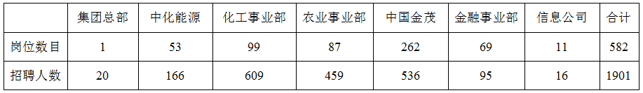 2021年中化集團將提供582個崗位,招聘共計1901人。