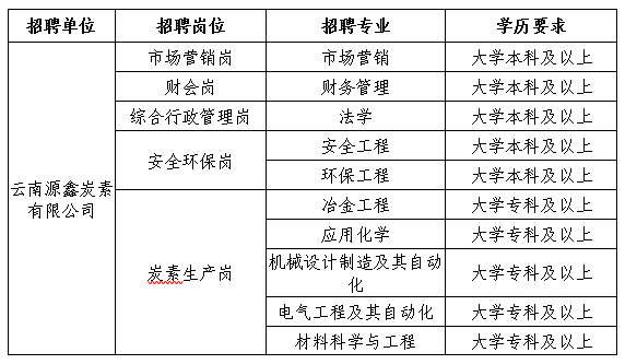 | 鶴慶溢鑫鋁業(yè)有限公司 | 鋁電解崗 | 冶金工程 | 大學(xué)本科及以上 |